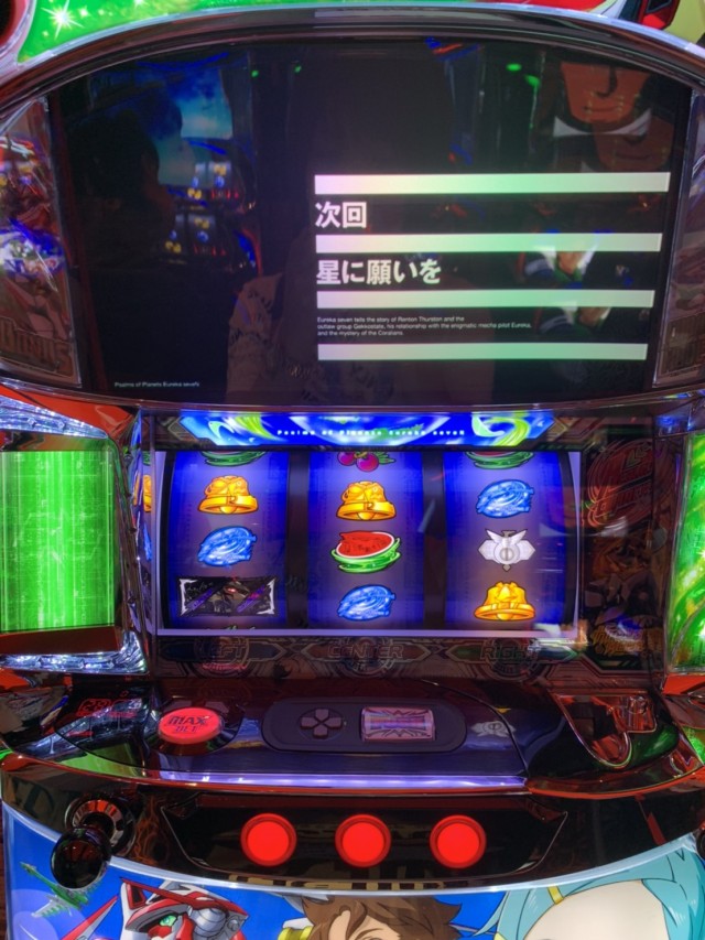 エウレカ3は、いかにこのKCCをヤレるかどうかが結構大事になってくるので、気合を入れてレバーを叩くも…、すぐリプレイを引いて終了。その後もサクサクとKCCに入るものの、すぐリプレイを引いてしまう下手くそさ。まったくKCCがヤレない。
