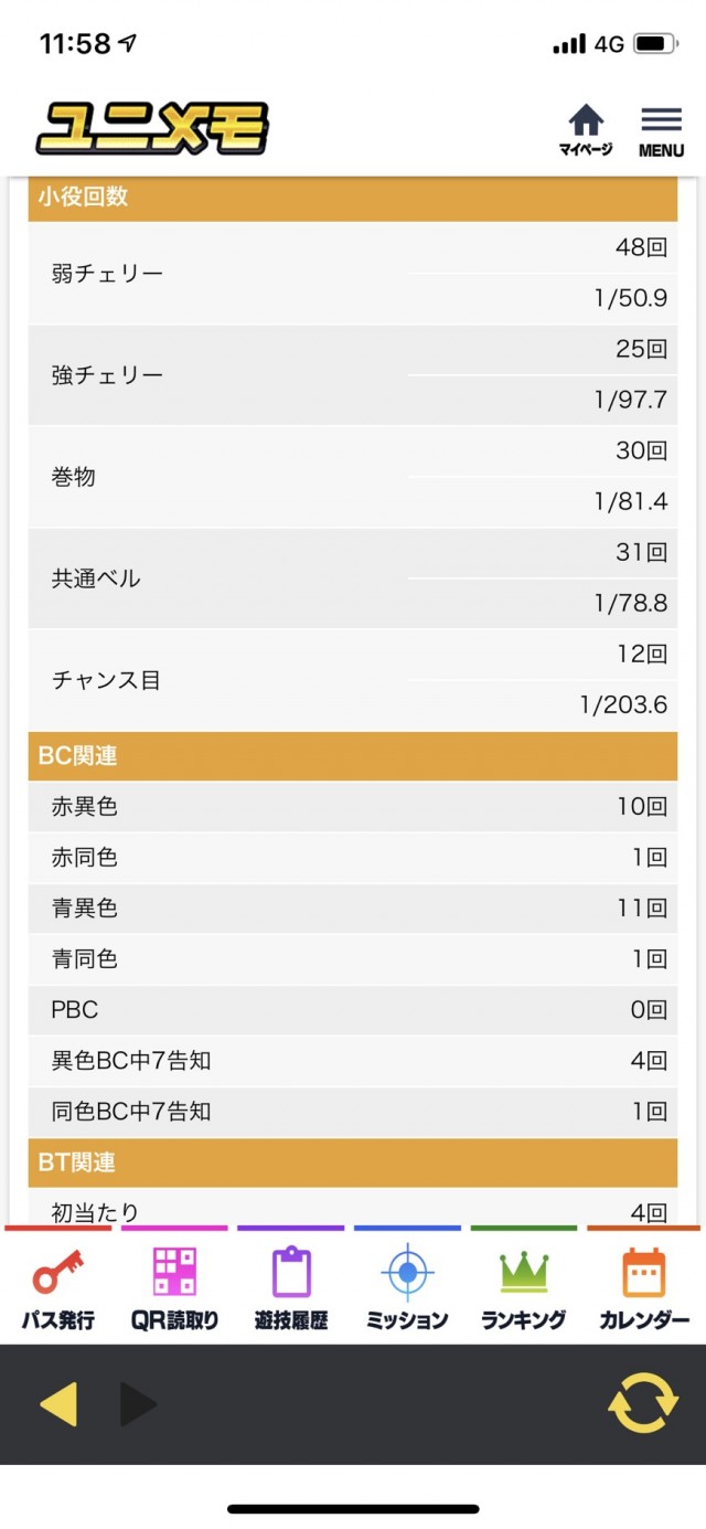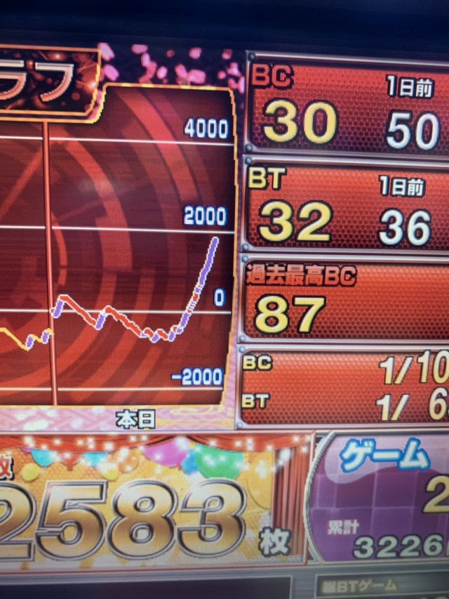 1回目は、6スルーしてBT突入するも続かず終了。その後2スルー入り、3スルー入りといった感じで、BT突入は軽いのに全くヤレず、全然続かない。
