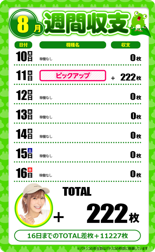 はい。先週は何かと忙しかった+お盆だったので、1日しか打っていません。なので、唯一稼働した日のことを書きます。