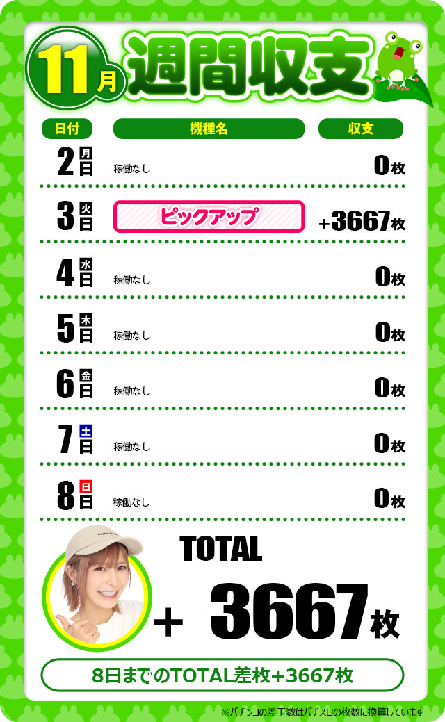 収支+3667枚