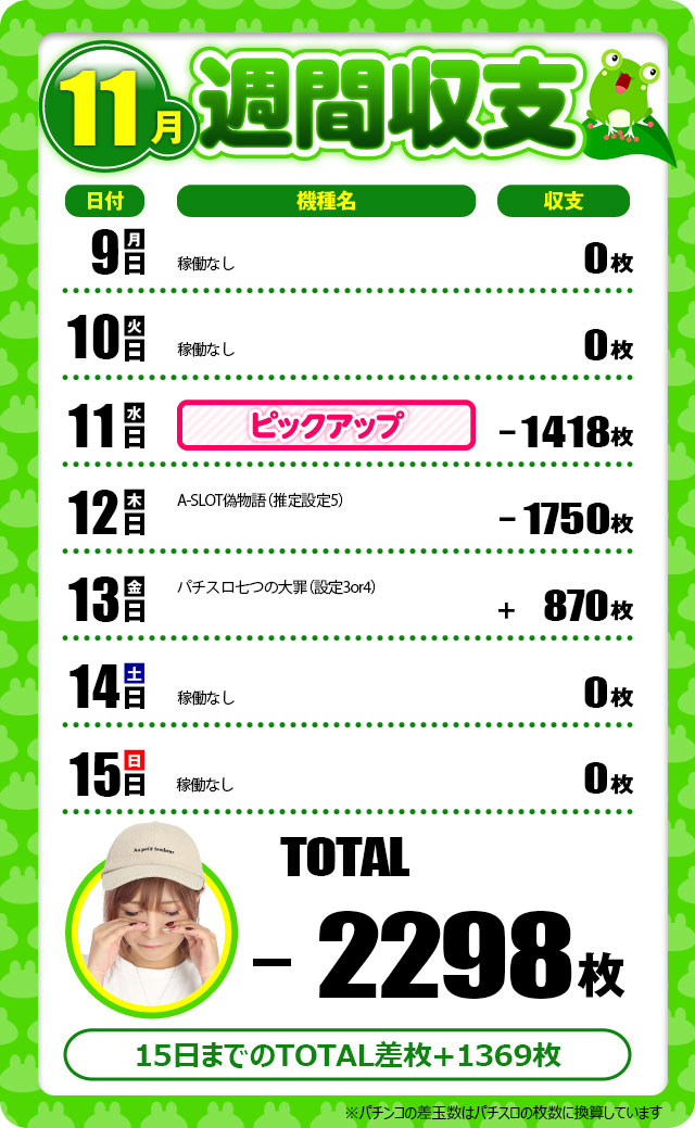 さてさて、今週の収支(…あまり上げたくないですが)上げていきますね。