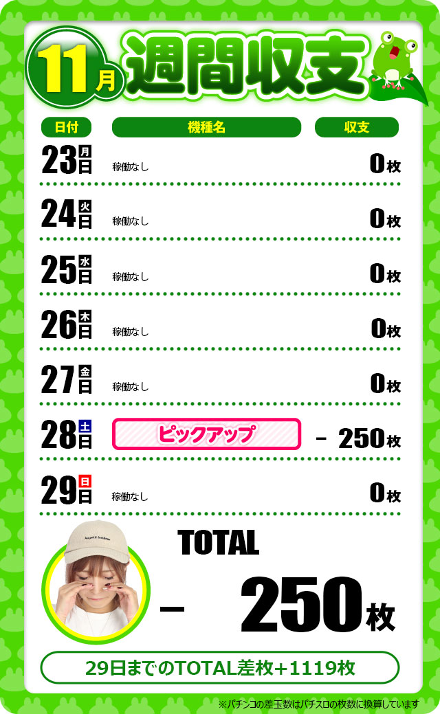 今週は1日だけ打てたケロ!! さっそく書いていきまーす♫