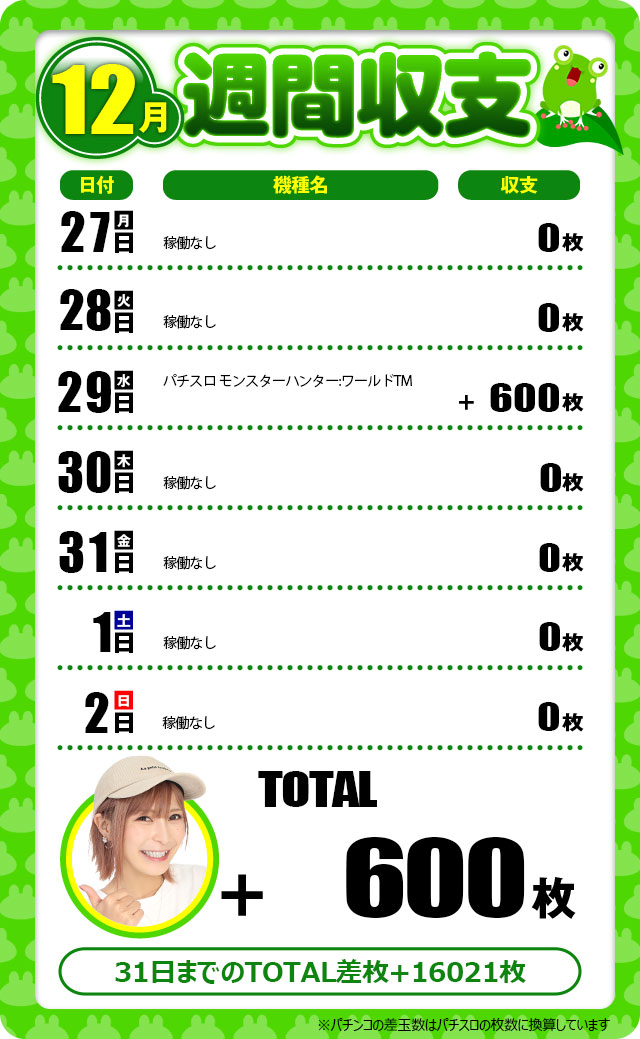 そうそう、先週ので12月の収支が決まった!って思ったのですが、結局12月29日に稼働しちゃいました♡