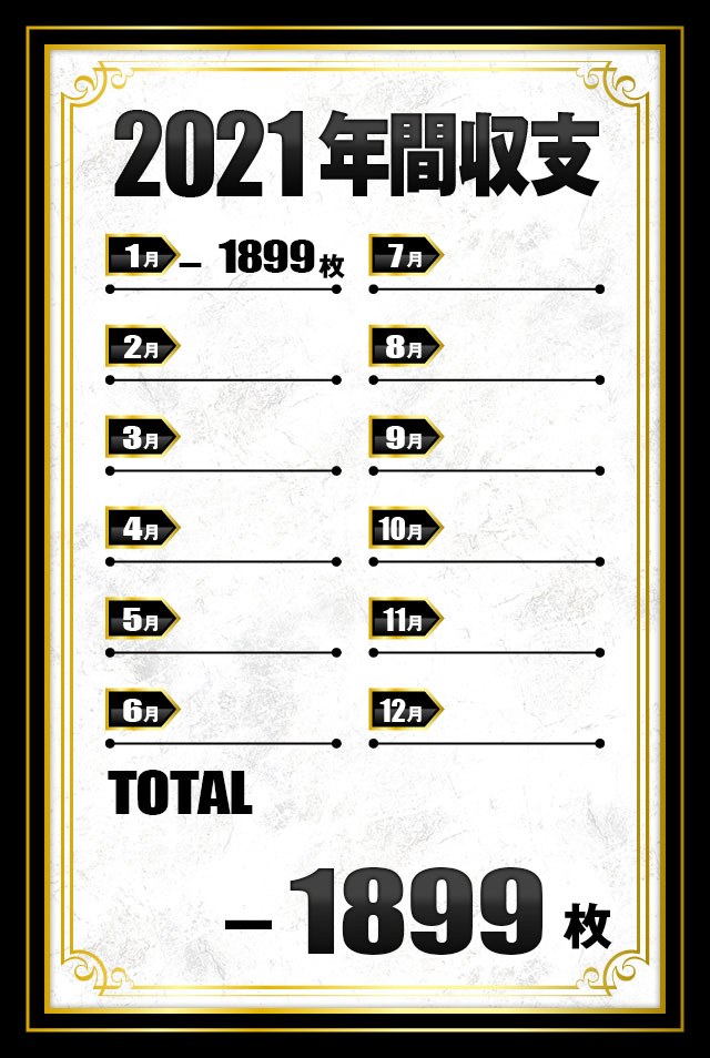 それ以外は間違った立ち回りはしていないので、負けてしまったけど良かったかなという感じ。ですが幸先悪く1月の収支がマイナスで終了してしまったので、2021年は波乱の年になりそうです(笑)。
