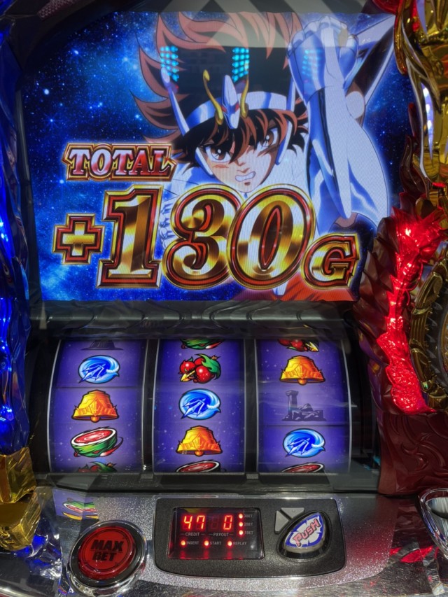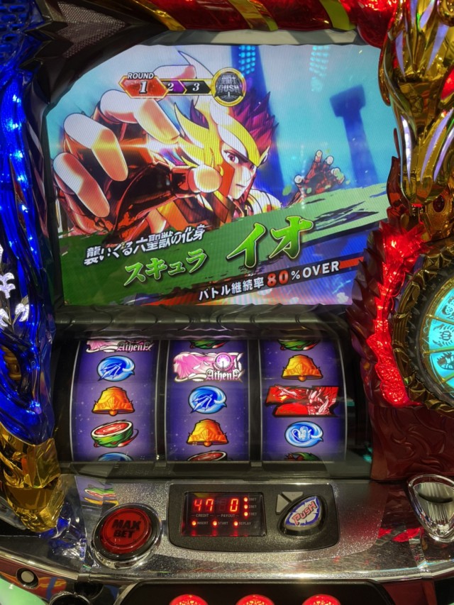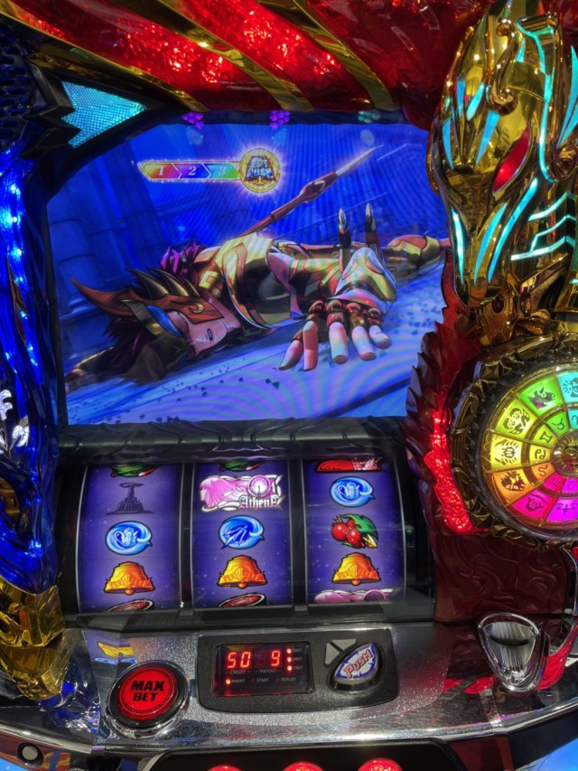 稼働へ。抽選で7番という良番を引きまして、そろそろヤル(設定を入れてくる)んじゃないかという予想で『パチスロ聖闘士星矢 海皇覚醒』へ。