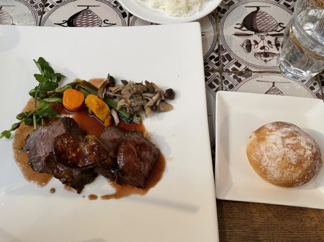 特に写真を載せるものがないので今日のお昼ご飯を。牛ステーキとフォアグラのなんちゃら。