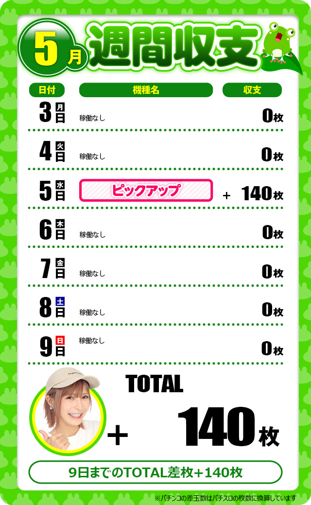 収支発表、というか先週は1日しか打っていないので、その1日のことと結果を書いていきたいと思います。
