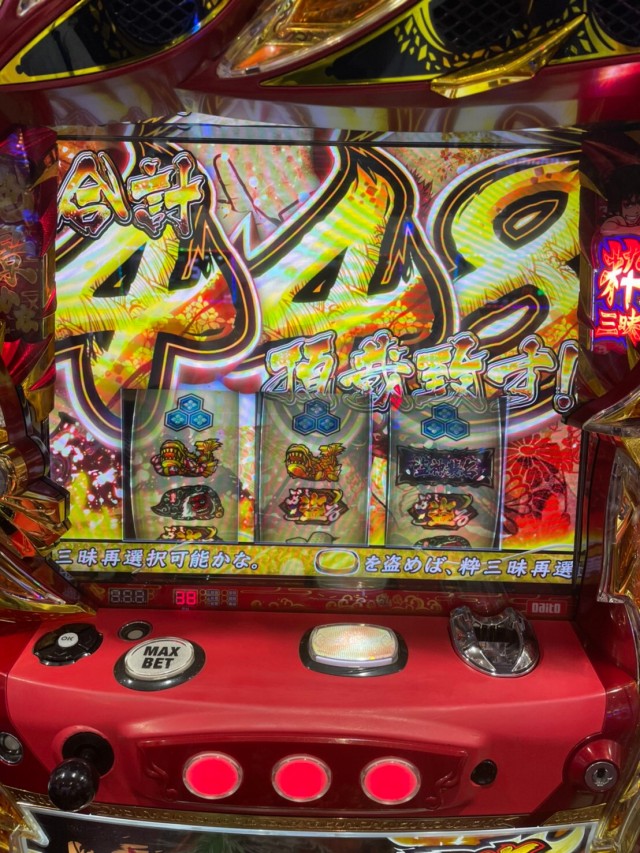 赤まで行くと低設定でも約5割くらいで当選しますので、ここはハズしたくないところ。