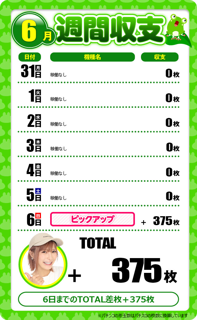 総収支+375枚