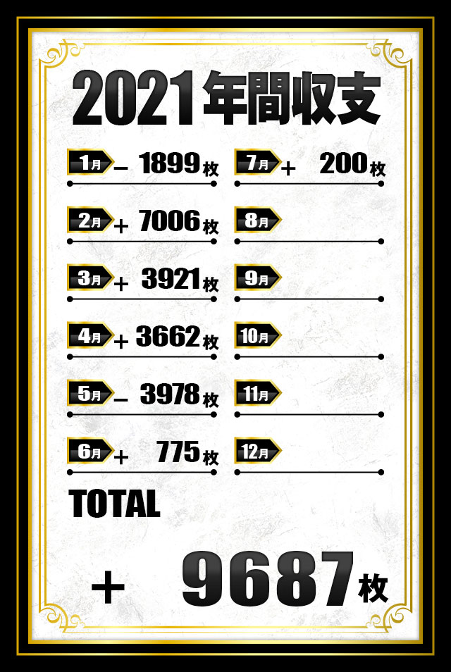 1回目のART枚数を引き継いでしまっているのですが、結果この枚数になりました。