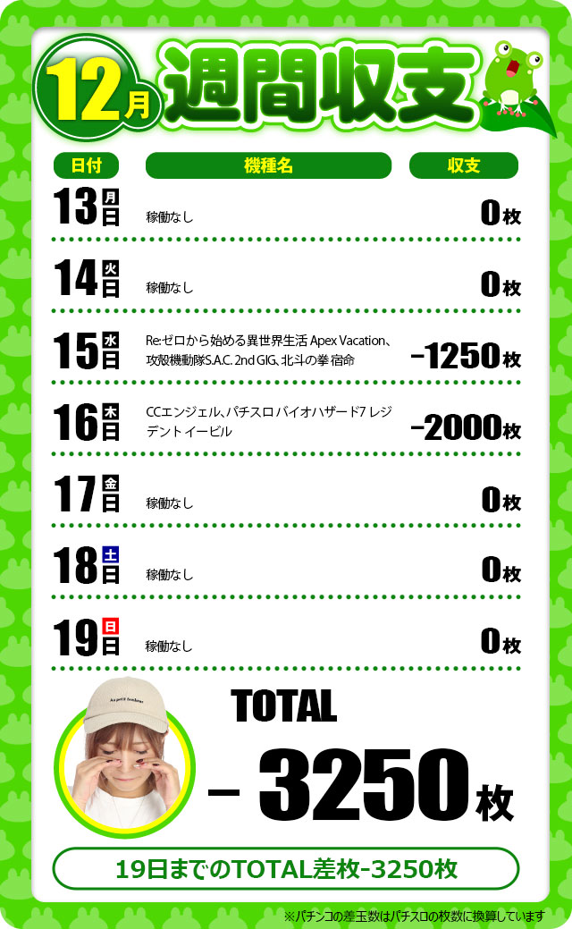さて今週の収支。