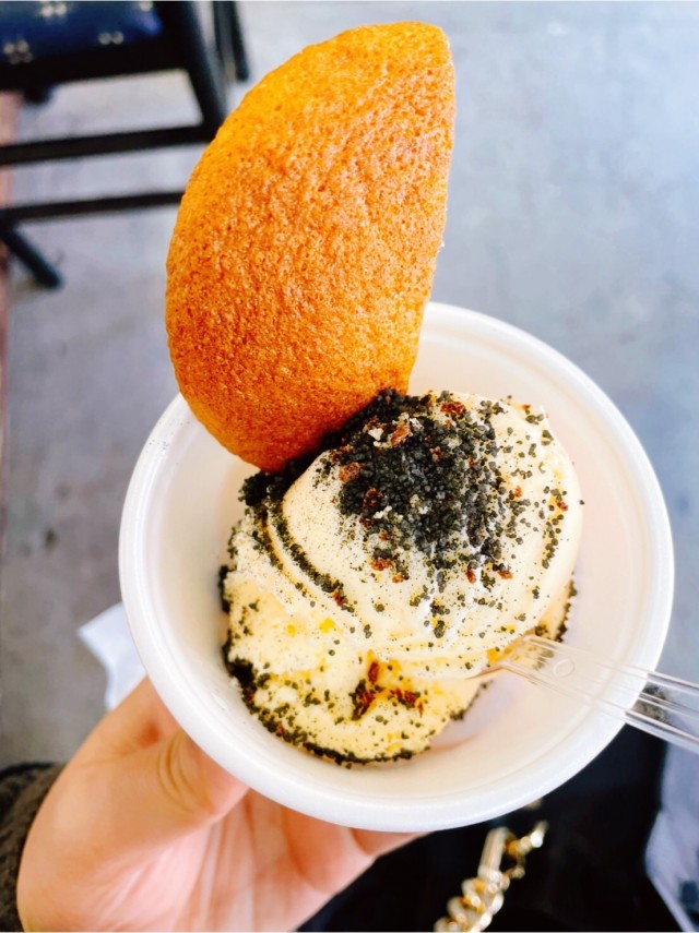 食感は見ての通りじゃりじゃりする感じ。火山灰の食感に似せて作っているのでそりゃそうだ。