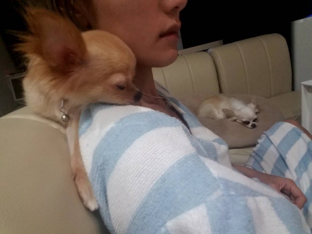 ソファーと私の肩で眠るのが