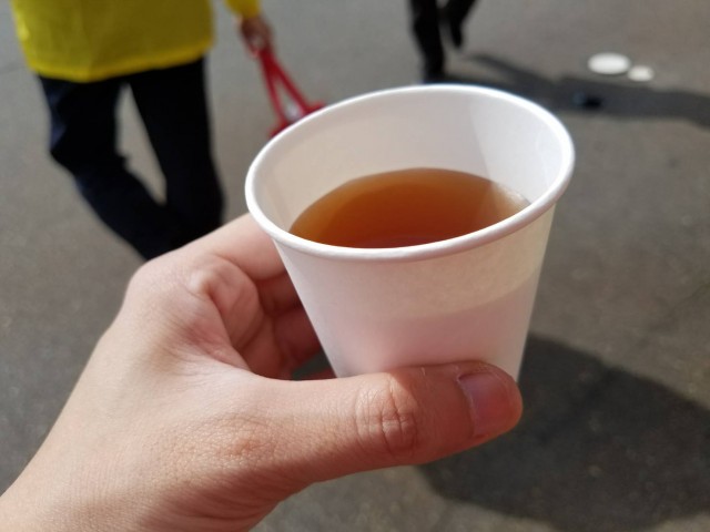 冷たいお茶を配ってくれる