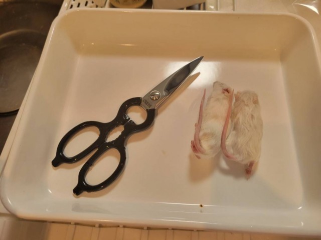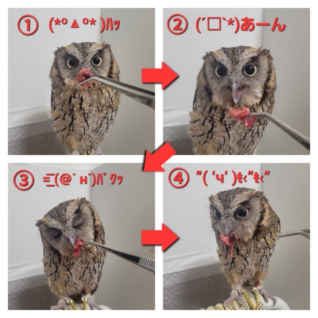 ウチは小型4羽で1日に3~4匹のマウスを食します。