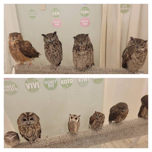 小型、中型、大型と様々な種類のフクロウさん達が在籍