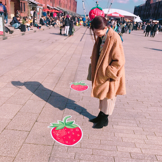 ということで、横浜に到着。すると、赤レンガ倉庫付近で「いちごフェア」なる、いかにもインスタ映えしそうなイベントが行なわれているとの情報をキャッチしました。とりあえずオシャレな場所に来てみただけなのに、これは幸先良し!
