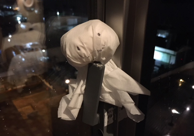 翌日の予報が雨だったので、なるみんとさやかちゃんがてるてる坊主を作ってくれたよ。