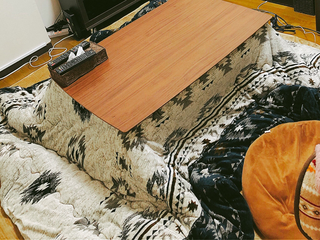 雪国である山形育ちのウチにとって東京の寒さなんて余裕…のはずだったのですが、何年も東京に住むと、乾燥がすごくて山形よりも寒く感じるんですよね。暖房をつけるとさらに乾燥するし…。なので満を持してこたつを購入!