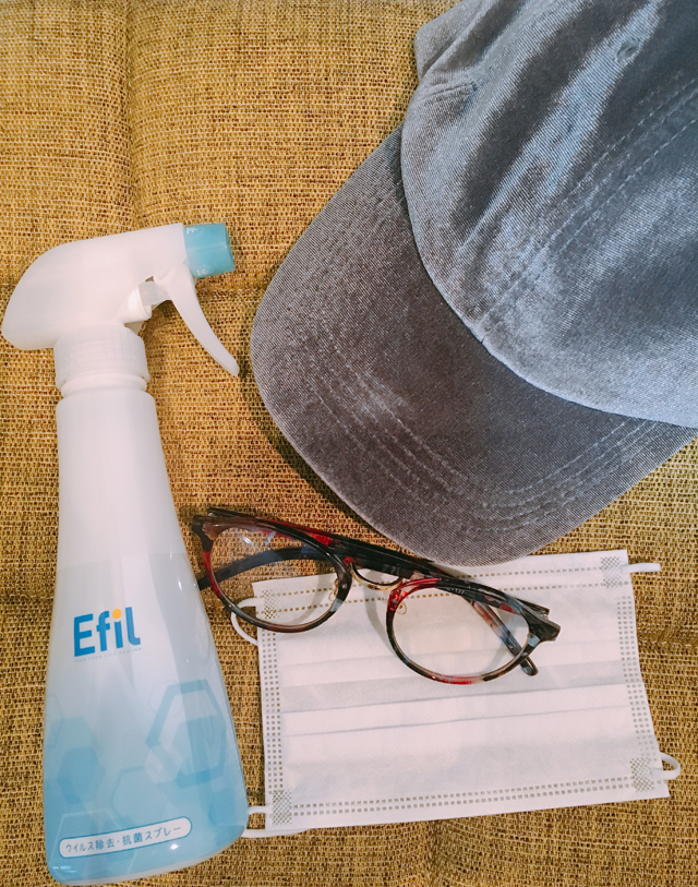 まず、基本は外出を極力控えめにすること。どうしてもという時は、外出前にドラックストアで買ったウイルス除去スプレーを服にシュッシュ!