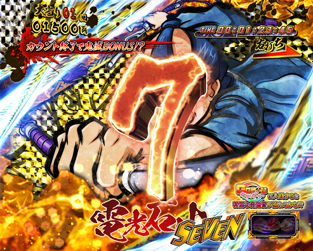 電光石火モード中の実質大当り確率が約1/1.0のため、1回転で電光石火の如く大当りが即連する。