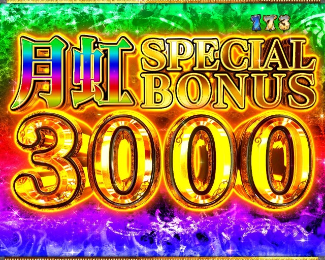 出玉獲得のメインとなる「RUSH」は初当り時の60.2%で突入するのだが、初当りの50%が払い出し約3000個の「月虹SPECIAL BONUS」となるため、RUSH突入時の大半は約3000個の出玉を持った状態でRUSHをスタートすることができる。さらにRUSH中の大当りは約1500個or約3000個のみと、一撃の出玉性能が高い点も魅力だ。