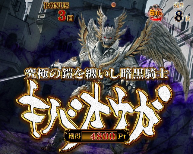 そして、ラスト1回転+残保留4個の5回転は「マカパト」へ移行し、ここでマカパトが点灯すれば大当りとなり、消化後はループタイプの「魔戒CHANCE」に切り替わる。