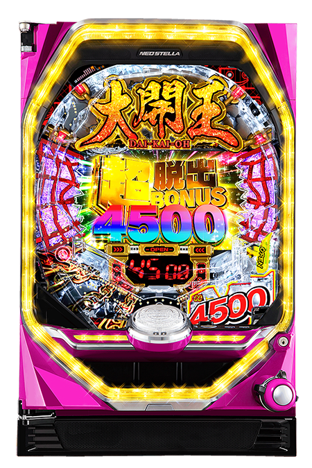 超脱出BONUS4500獲得後は、連チャンゾーン「大開王RUSH」突入も濃厚になるため、約52%をいかに引き当てられるかが重要になる。