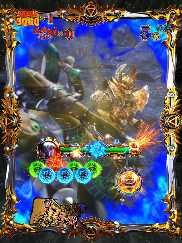 初当りは「ジンガバトルBONUS」と「SUPER GARO BONUS」の2種類で、前者ならラウンド中のバトル勝利で右打ちモード「魔戒CHANCE」突入し、後者は当選した段階で魔戒CHANCE突入濃厚となる。