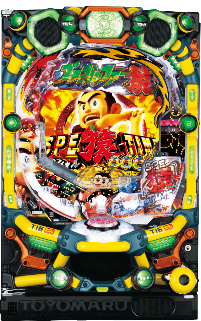 本機の注目ポイントは通常時大当りの60%で突入する「SPE猿TIME」で、突入時には必ずV×4個がストックされ、チャージしたVをボーナスとして一気に放出する仕組み。出玉の内訳は10Rと2Rが50%ずつとなっている。