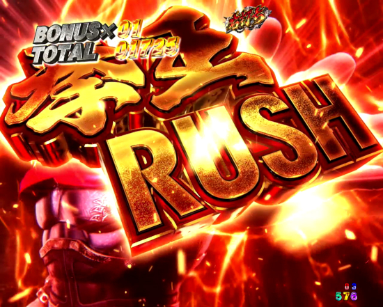 10回転+残保留4個で構成され、継続率は約75%。RUSH中の大当りは約50%で3000個獲得(10R×2回)と、拳王の名にふさわしい出玉性能を実現している。