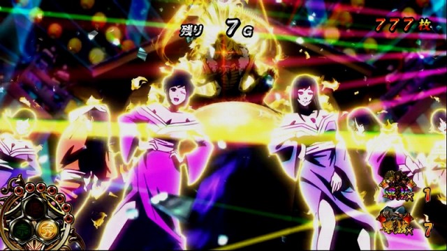 そしてお馴染みの「覚醒」は1セット10G~30Gの天下DASH超高確率ゾーン。覚醒中の天下DASH当選率は約1/8とシリーズ最高レベルになっている。なお、覚醒中は全役で天下DASHを抽選し、レア役成立で当選確定だ。