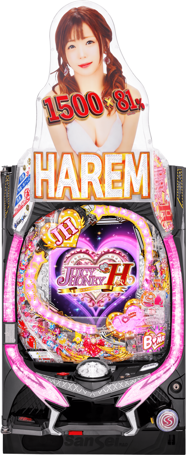 セクシー演出が好評の『ジューシーハニー』シリーズ最新作『Pジューシーハニーハーレム』が、サンセイR&Dより登場する。