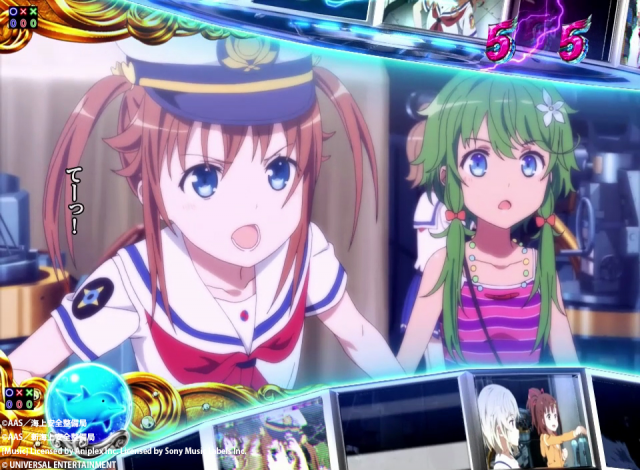 本機の出玉増加の肝は100回転の「ブルーマーメイドラッシュ」。突入率は51%、継続率は約77%のSTタイプで、まずは大当りの入り口となる「フリートチャージ」を目指すゲーム性だ。