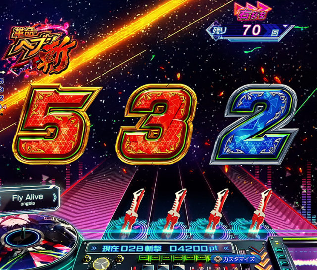 出玉獲得の鍵を握るのは、ST100回転 or 時短10000回転の「革命ヘブン 斬」で、演出面は高速変動、即当りメインの疾走感&爽快感を徹底追求したRUSHとなっていて、トータル継続率は約90%と驚異の高さを誇る。