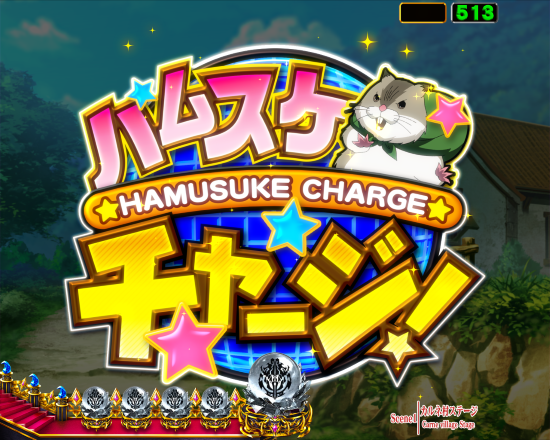 通常時の図柄揃い確率は1/329.9。2R大当り(ハムスケチャージ)を合算した大当り確率は1/197.9で、ハムスケチャージからもわずかではあるがOVER MAX直行の可能性がある。