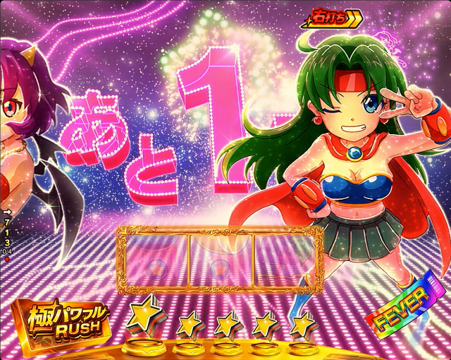また、本機注目の新要素として、大当り2回のストックが濃厚となる「極・パワフルRUSH」を搭載。突入契機は10R大当りの獲得時で、右打ち中の振分けは約10%となっているぞ。ラウンド中のセブン超え演出発生を祈ろう。