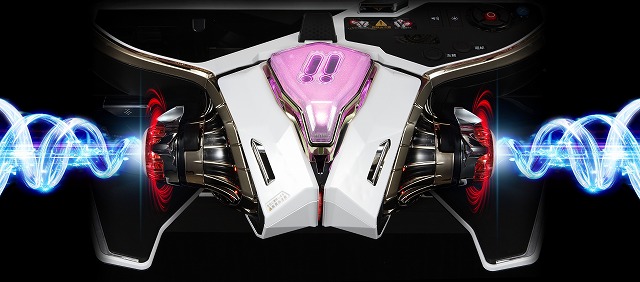 ハンドルは左右どちらの手でもプレイ可能な「TWINハンドル」。お馴染みのP-フラッシュやAir-Vibが発動するとどうなるのか…、ぜひ体験してみたいところだ。