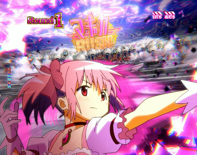 ラウンド中のバトルでほむらが攻撃に成功すれば、待望のラッキートリガー「アルティメット超RUHS」へ突入する模様だ。勝率は約55%とかなり現実的な数値になっているため「ワルプルギスの夜BONUS」発生時はラッキートリガー突入に期待しよう。
