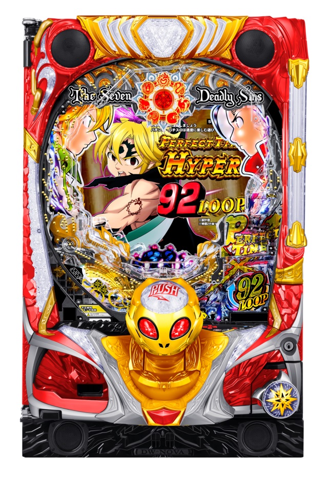本機の最大の魅力は、出玉のメイントリガーである「パーフェクトタイムHYPER」。メリオダスがバトルに敗北するまで継続する転落式のRUSHで、継続率約92%を誇る爽快感抜群の右打ちを体感できる。ラウンド振り分けも強力で、高継続率の機種ながら右打ち中の約20%が10Rとなっているぞ。