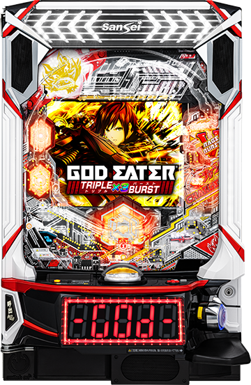 神速連チャンの代名詞『ゴッドイーター』シリーズ最新作が、サンセイR&Dスマパチ第1弾として降臨! 『eゴッドイーター TRIPLE BURST』は、突入しやすくなった新ラッキートリガーを搭載して9月に登場予定だ。