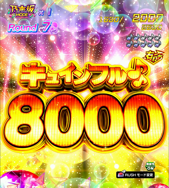 また本機は通常時のみならず、右打ち中も8個保留となる「サプライズ8システム」を搭載している。8個の保留すべてで大当りを引き当てていれば、8000個獲得の大量出玉大当り「キュインフル8000」となるのだ。