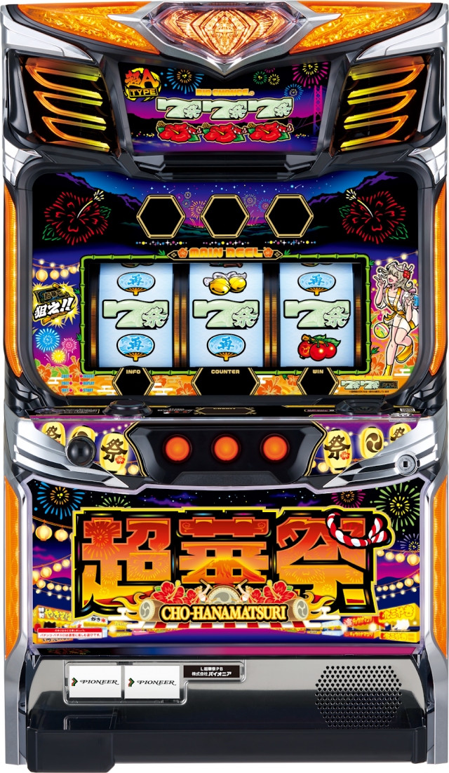 お祭りがモチーフの本機には、総数1,600以上のマツリ目と名付けられたリーチ目が存在する。ボーナスにはマツリ目や小役重複、ハズレ目などから入賞するが、マツリ目がわからなくても大丈夫。お馴染みの筐体上部にあるハイビスカスが光ればボーナス確定だ。
