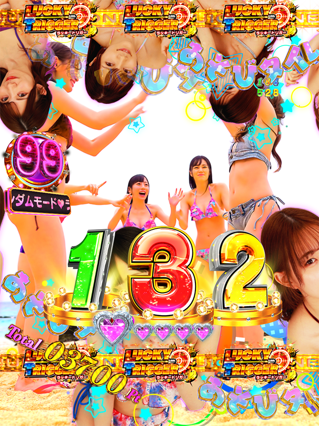 極嬢HONEY BONUSは上乗せ型大当りになっていて、+1000個の上乗せが50%でループしていく。そしてループするたびにラッキートリガーを抽選するため、通常RUSH中はいかに極嬢HONEY BONUSを引けるかがラッキートリガー(以下LT)突入のポイントとなる。