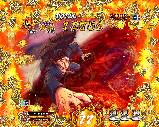 頂RUSHは高速消化のST157回転で、継続率は約80%。出玉は約300 or 3000個(1500個+750個×2)となり、3000個大当り「超番長3000ボーナス」の比率が70%と非常に高いのが特徴。