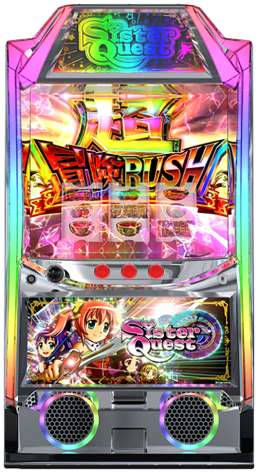 獲得期待枚数約3200枚(設定1)の上位AT「超冒険RUSH」を搭載した 『Sister Quest』は3月3日に全国導入開始予定。まだ見ぬ冒険をホールで体感せよ!!