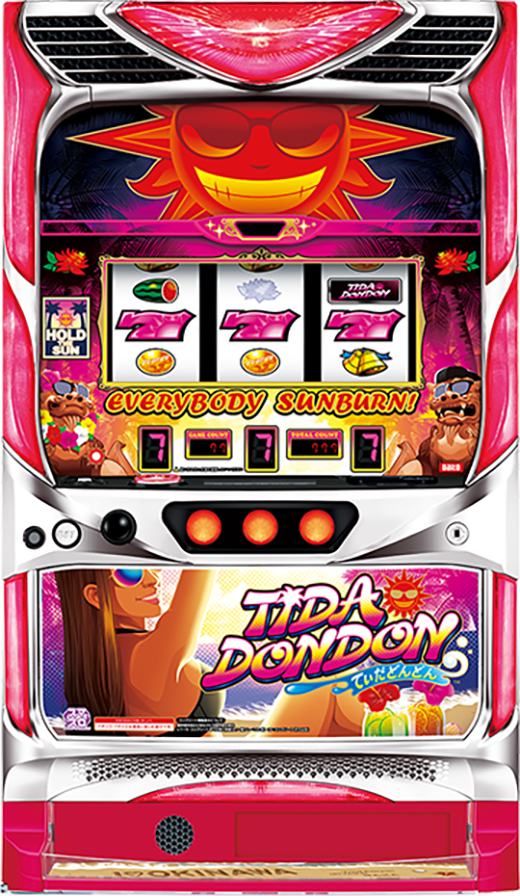 沖縄の輝く太陽をモチーフとしたアツいスマスロ 『てぃだどんどん』が、強烈な連チャン性能を携えパオン・ディーピーから3月に登場する。