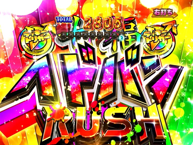 サガRUSH LTチャンスは継続率こそそのままだが、10Rの振り分けが約80%となり、10R大当り時の約1/2でLT「七福ヘドバンRUSH」に突入する。