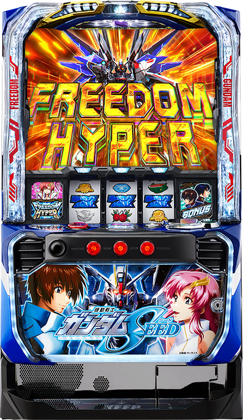上位AT「フリーダムハイパー」は純増6.5枚で、10G/1セットが96%でループしていく仕様。突入時の期待枚数が約3300枚と、現役トップクラスの出玉性能を秘めているぞ。
