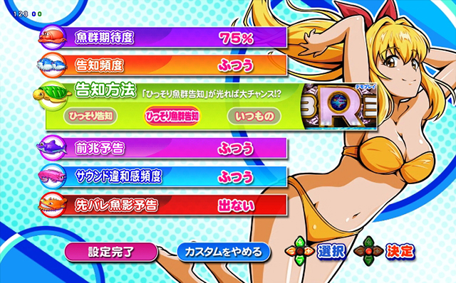またMy海カスタムに「先バレ魚影予告」を新搭載している。保留入賞時にピュイーンと効果音が鳴り、液晶に魚群シルエットが発生すればその合図。対象保留で魚群が出現し、大当りをグッと引きよせてくれる。またラッキーウィンドウ内に魚群が流れて大当りを告知する、「ひっそり魚群告知」カスタムも新搭載しているぞ。